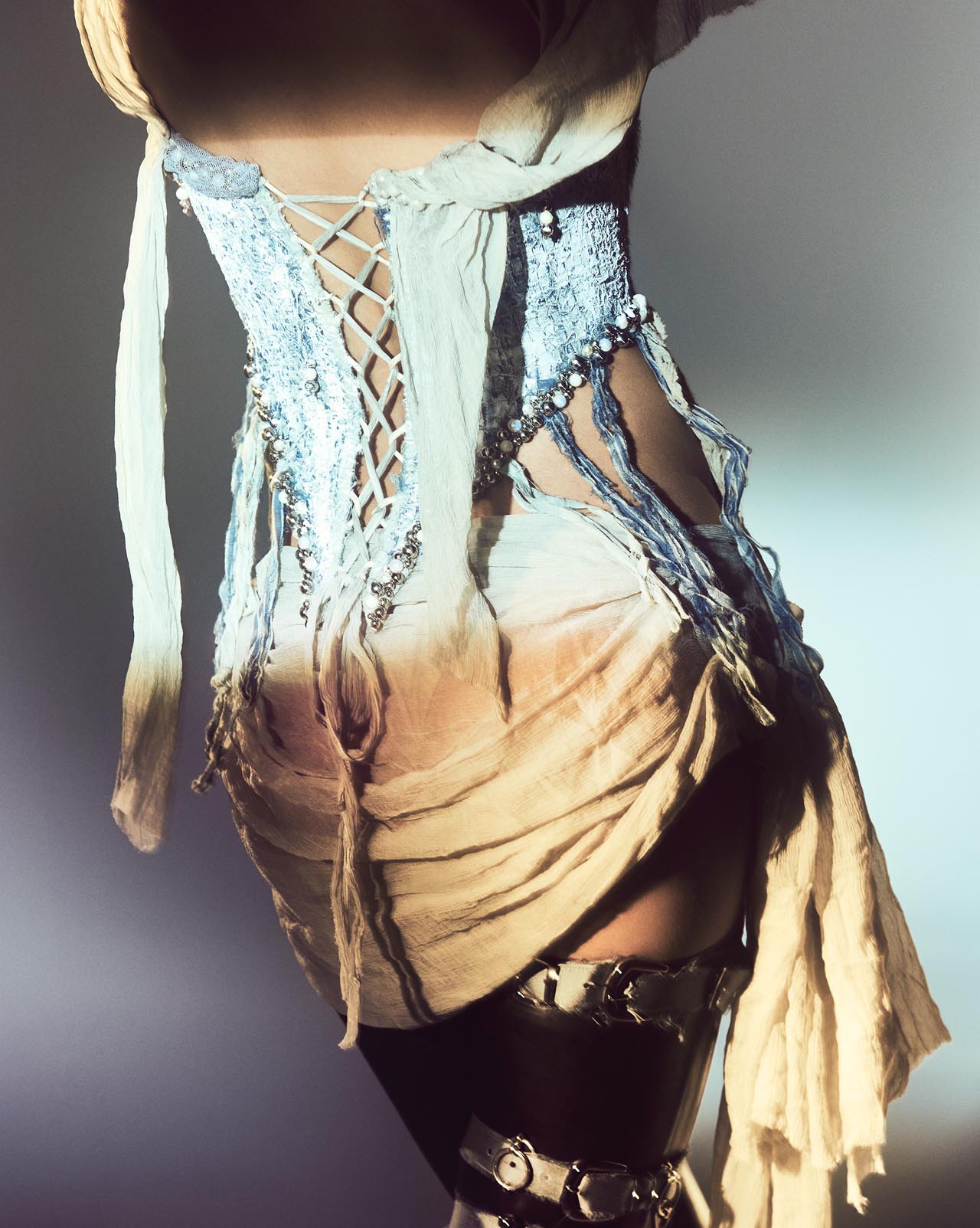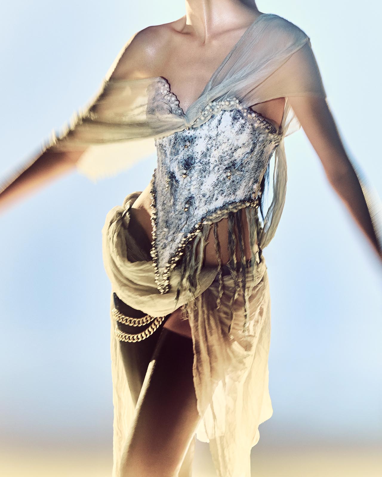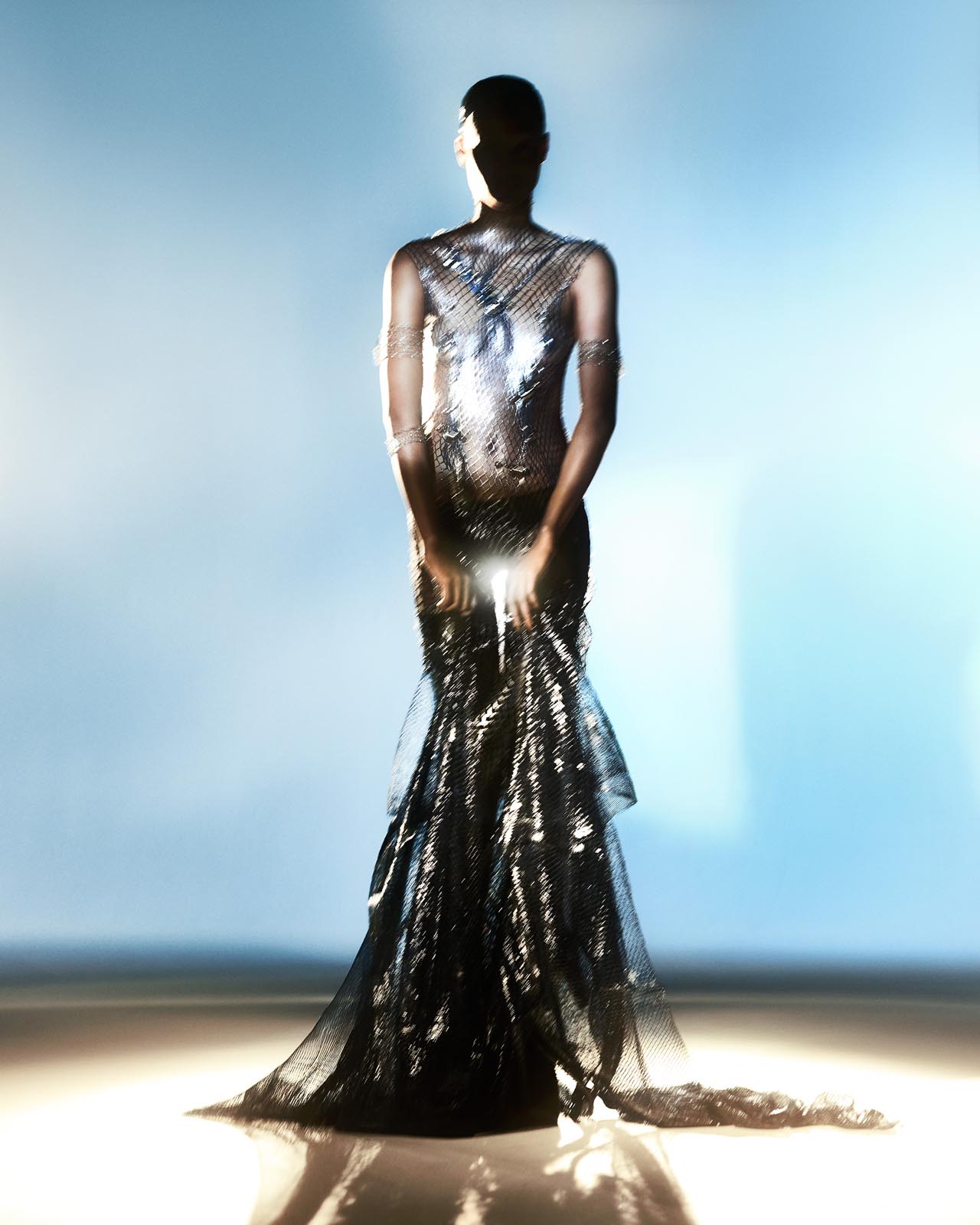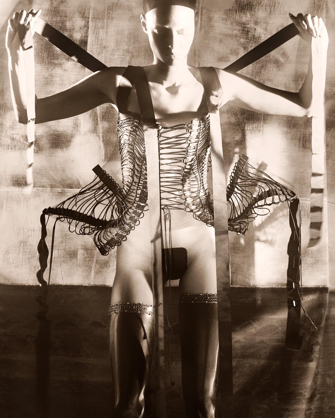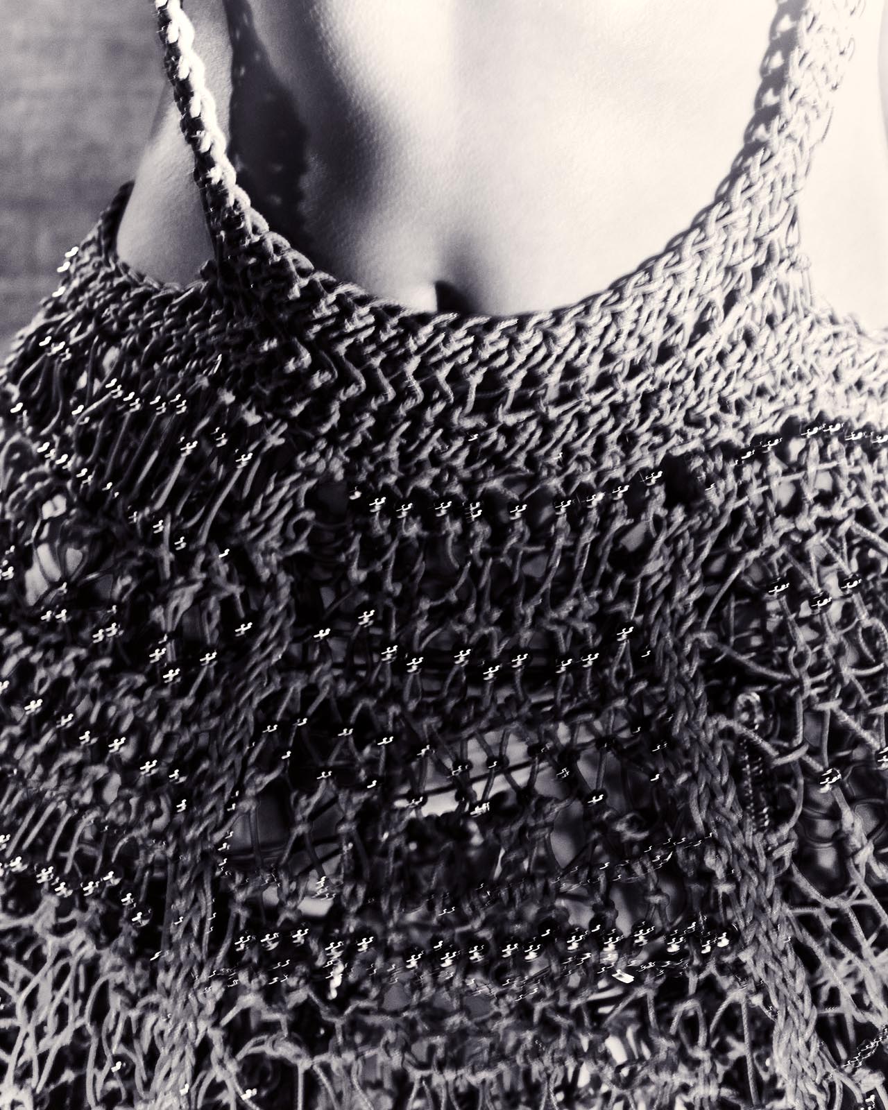 CP: Essa coleção nasceu de alguns anos de pesquisa, em que testei materiais como metal, jeans, fios de algodão resinados, sublimação e foil, até chegar a um ponto de esgotamento de técnicas. Foi nesse momento que o processo criativo se tornou muito mais livre, experimental e disruptivo.