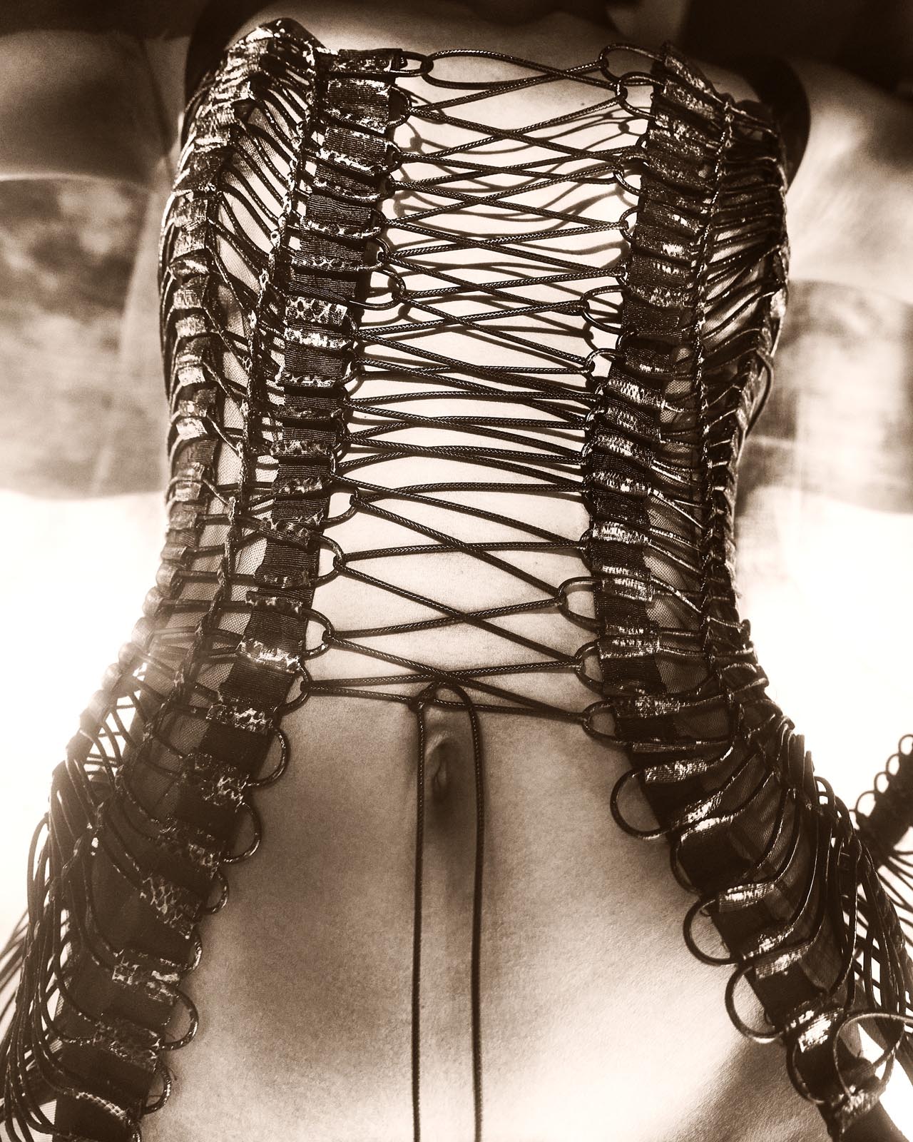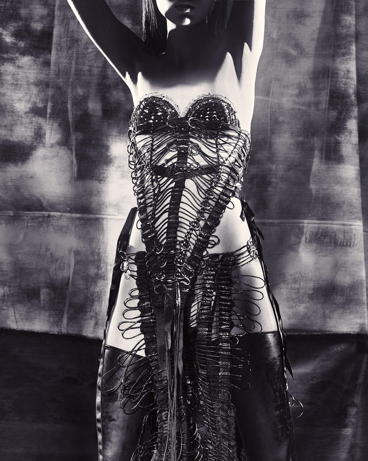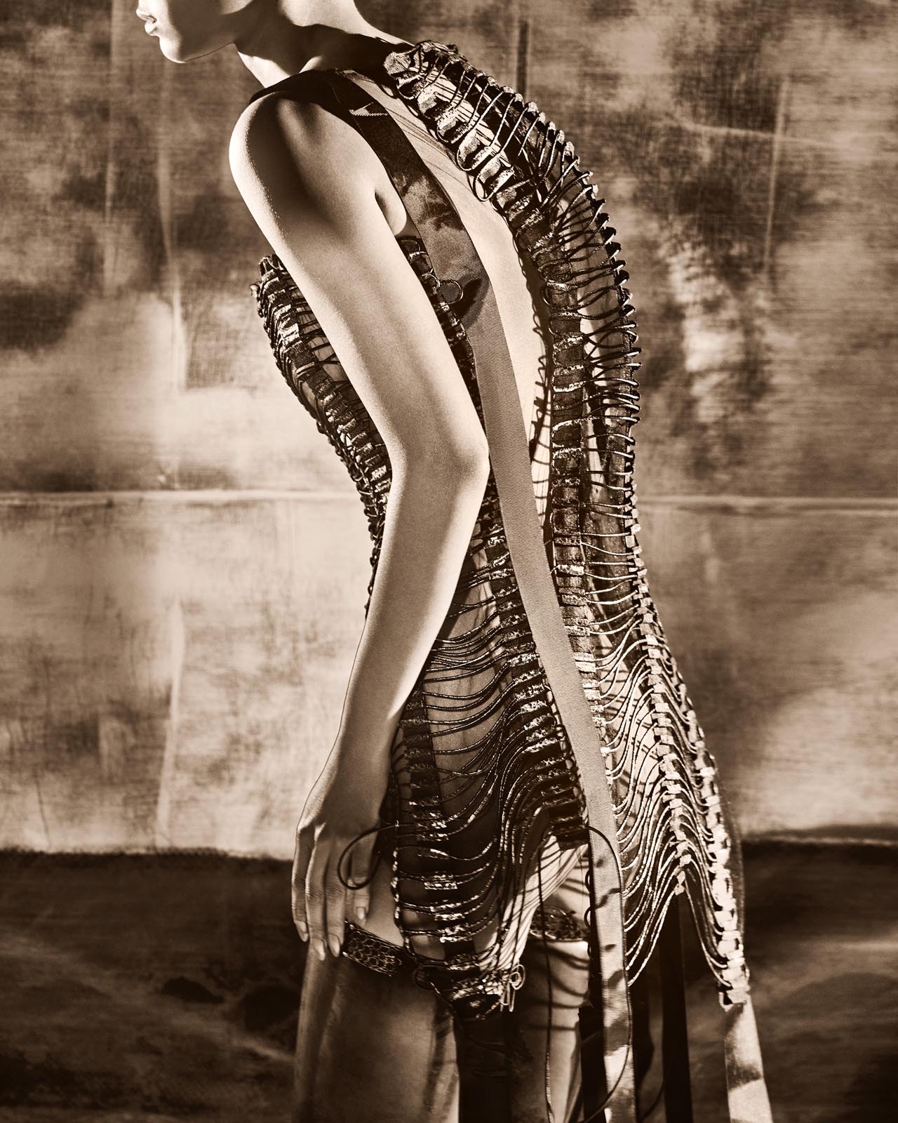 Há também muito do meu olhar para a joalheria, que é uma paixão antiga, mas não aquela joalheria convencional. Existe algo de inquieto no meu processo criativo, uma necessidade de tirar as coisas do lugar comum. Gosto de fuçar em lojas de material de construção, experimentar correntes, brocas, pregos, parafusos, enfim, tudo que é mais bruto.