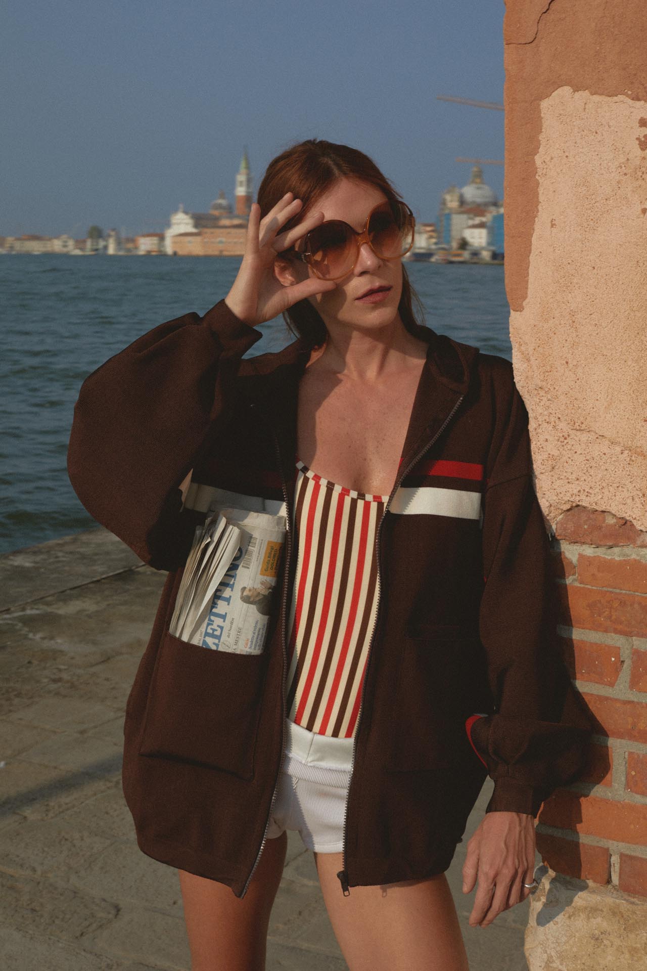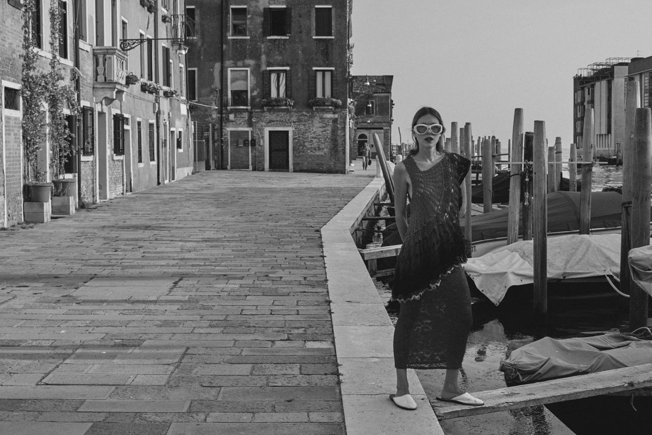 Entre os becos de Veneza e a luz dourada de Lido, a DJ Martha Pinel — em plena ascensão na cena eletrônica europeia — incorpora o verão com estilo e atitude. Moda e música se fundem em ritmo próprio, leve e autêntico, como ela.
